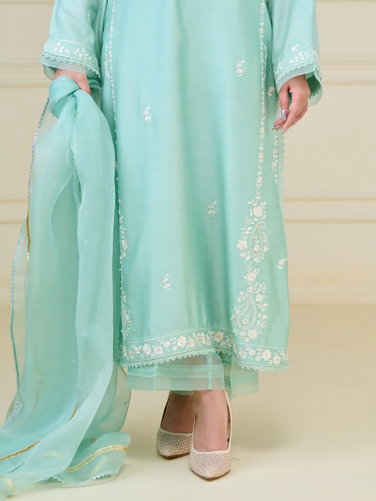 3 Piece- Pure Silk Net Embroidered Suit S110107