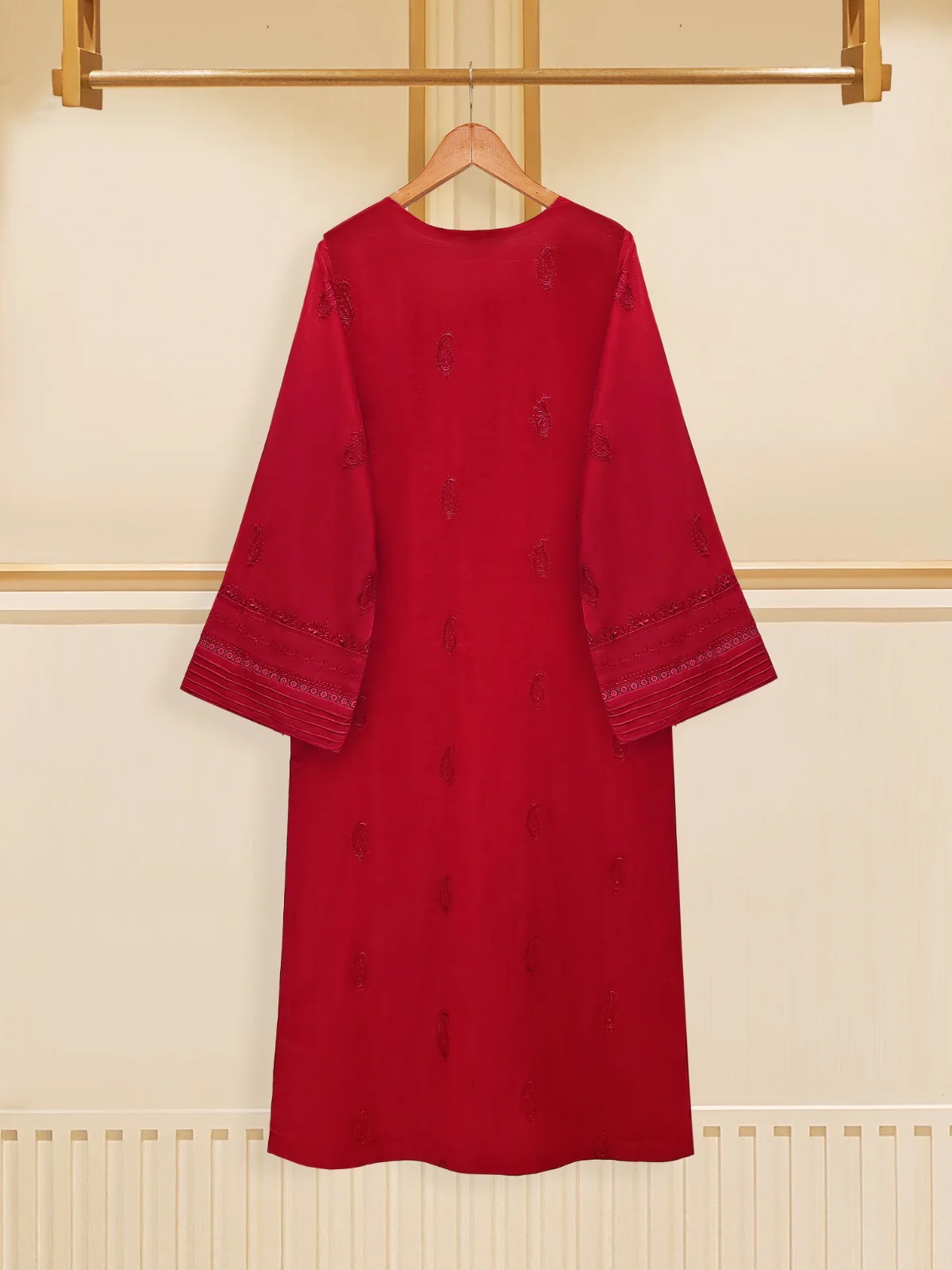 Embrace the festivities of the season in style with our red three-piece accented with intricate embroidery. Our exquisite suit is crafted in swiss voile fabric, embodying elegance and grace. The ensemble is paired with dupatta.