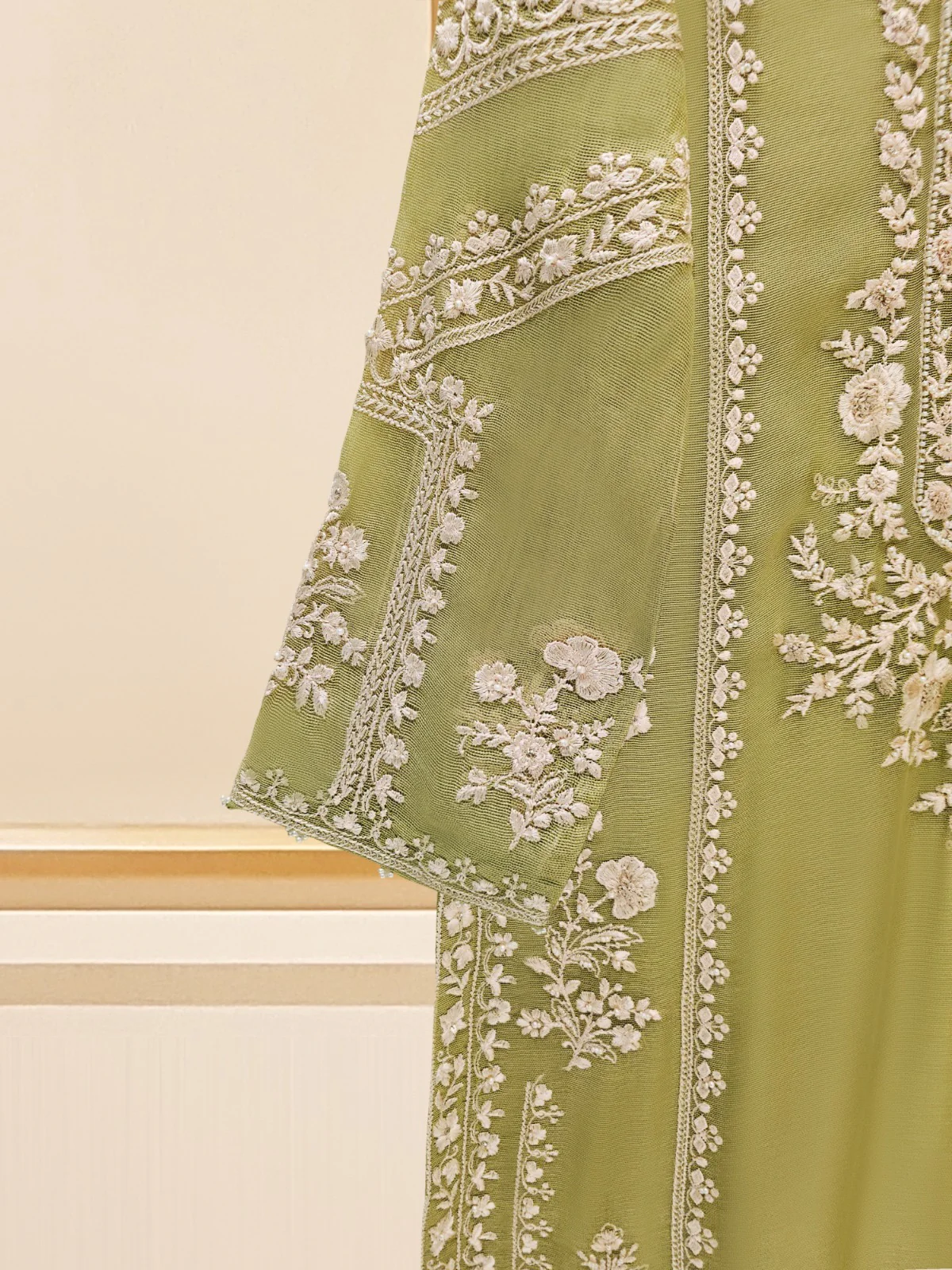 Introducing our elegant embroidered cotton net shirt with pants and dupatta a perfect choice for those who appreciate intricate detailing and graceful style. Crafted from high-quality cotton net fabric, this shirt offers a lightweight and luxurious feel, allowing you to feel comfortable and chic throughout the day. The set comes with a matching dupatta and pant which enhances the overall look and adds a touch of finesse to your outfit.