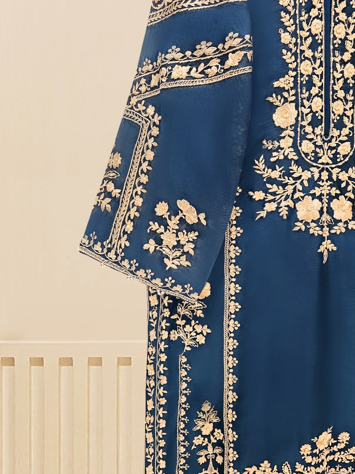 3 Piece - Pure Cotton Net Embroidered Suit S109386