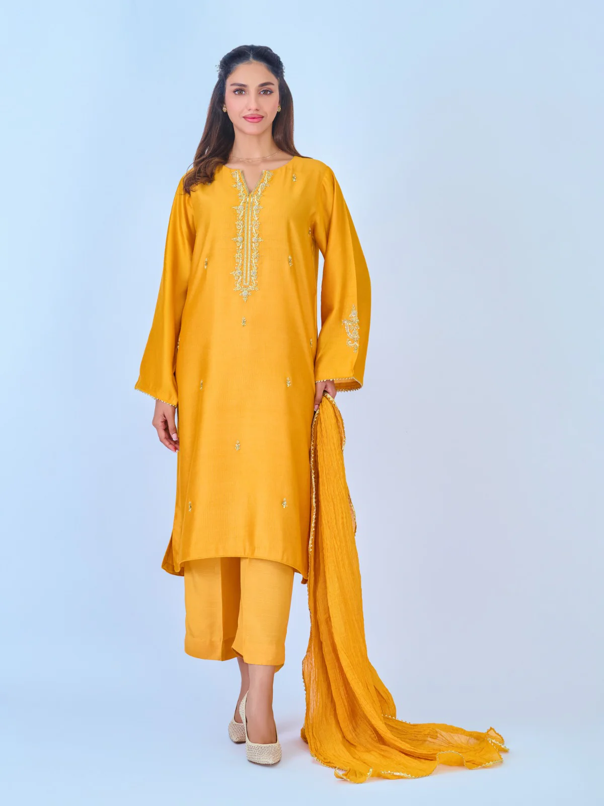 3 Piece- Pure Silk Net Embroidered Suit S109938
