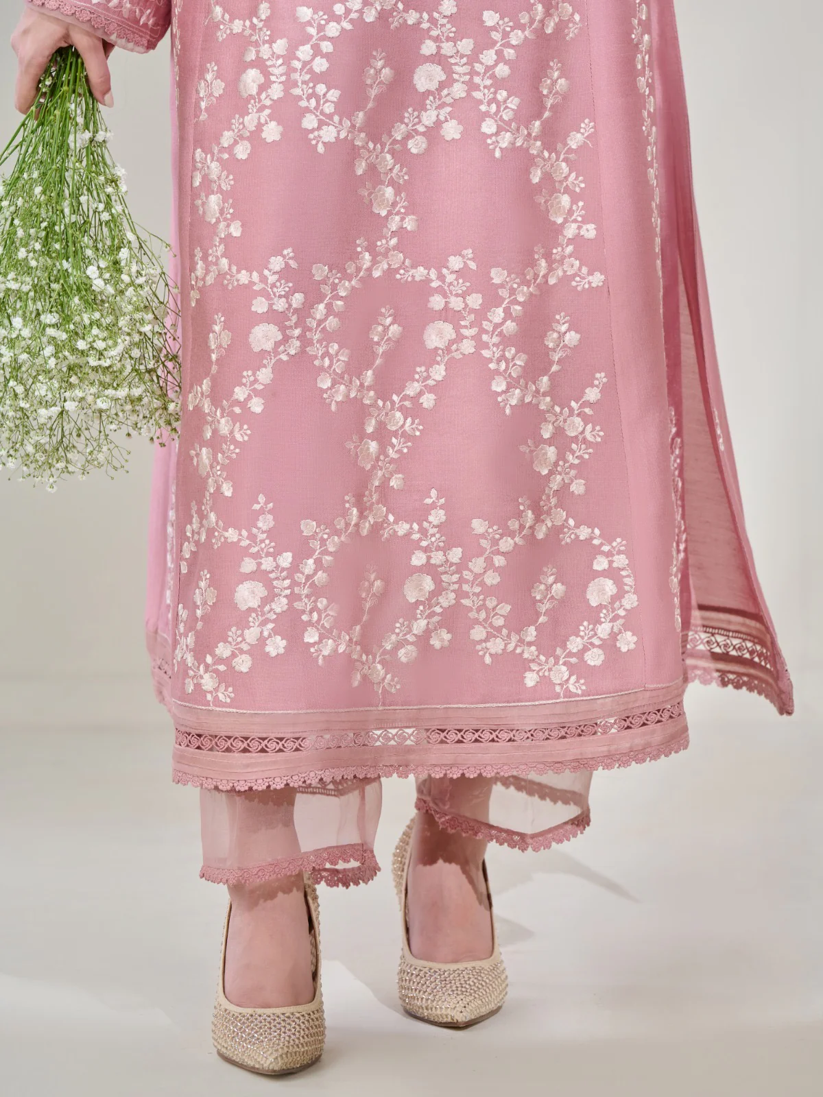 3 Piece- Pure Silk Net Embroidered Suit S110366