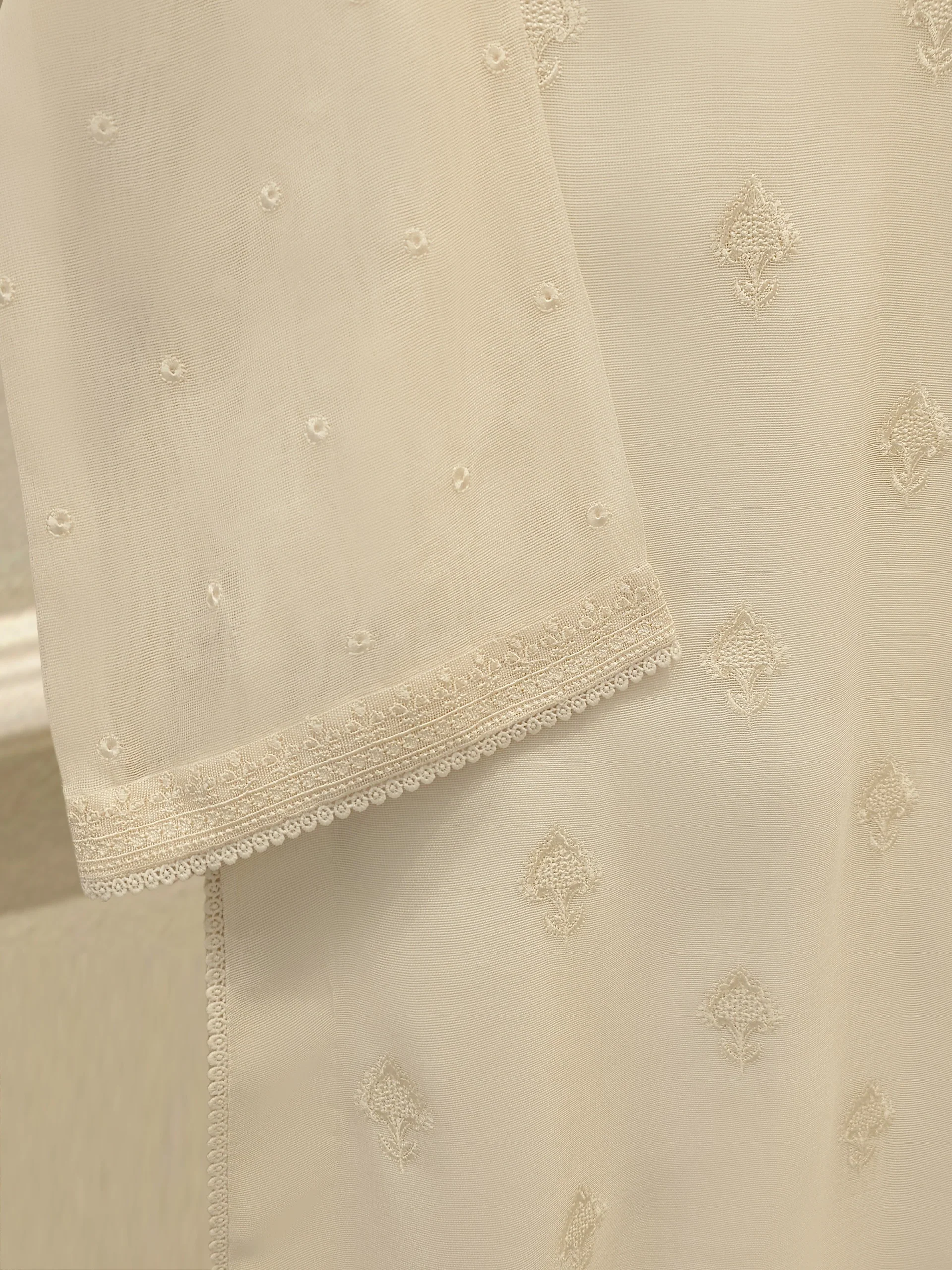 (Unstitched) 3 Piece - Pure Embroidered Cotton Net Suit S113613